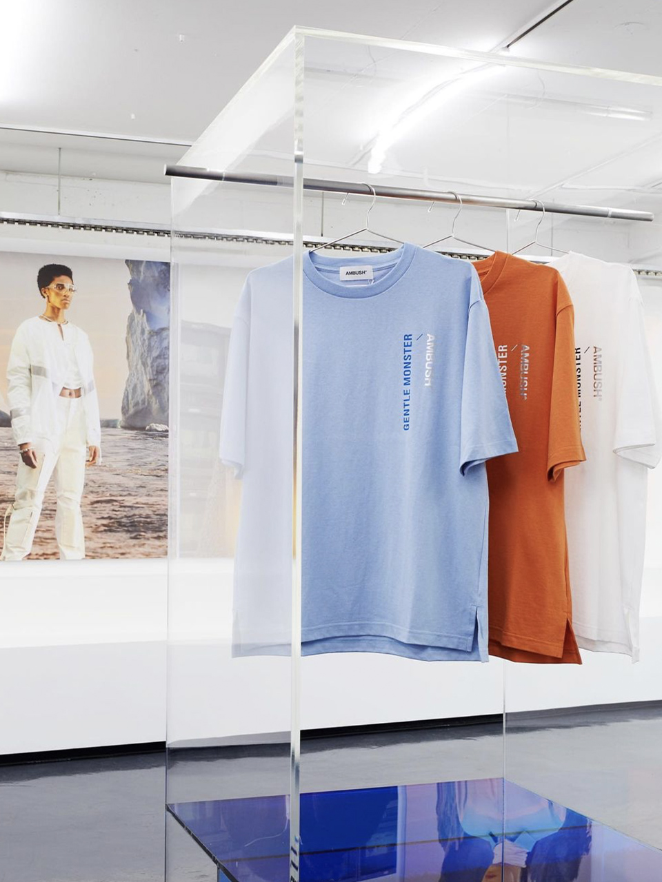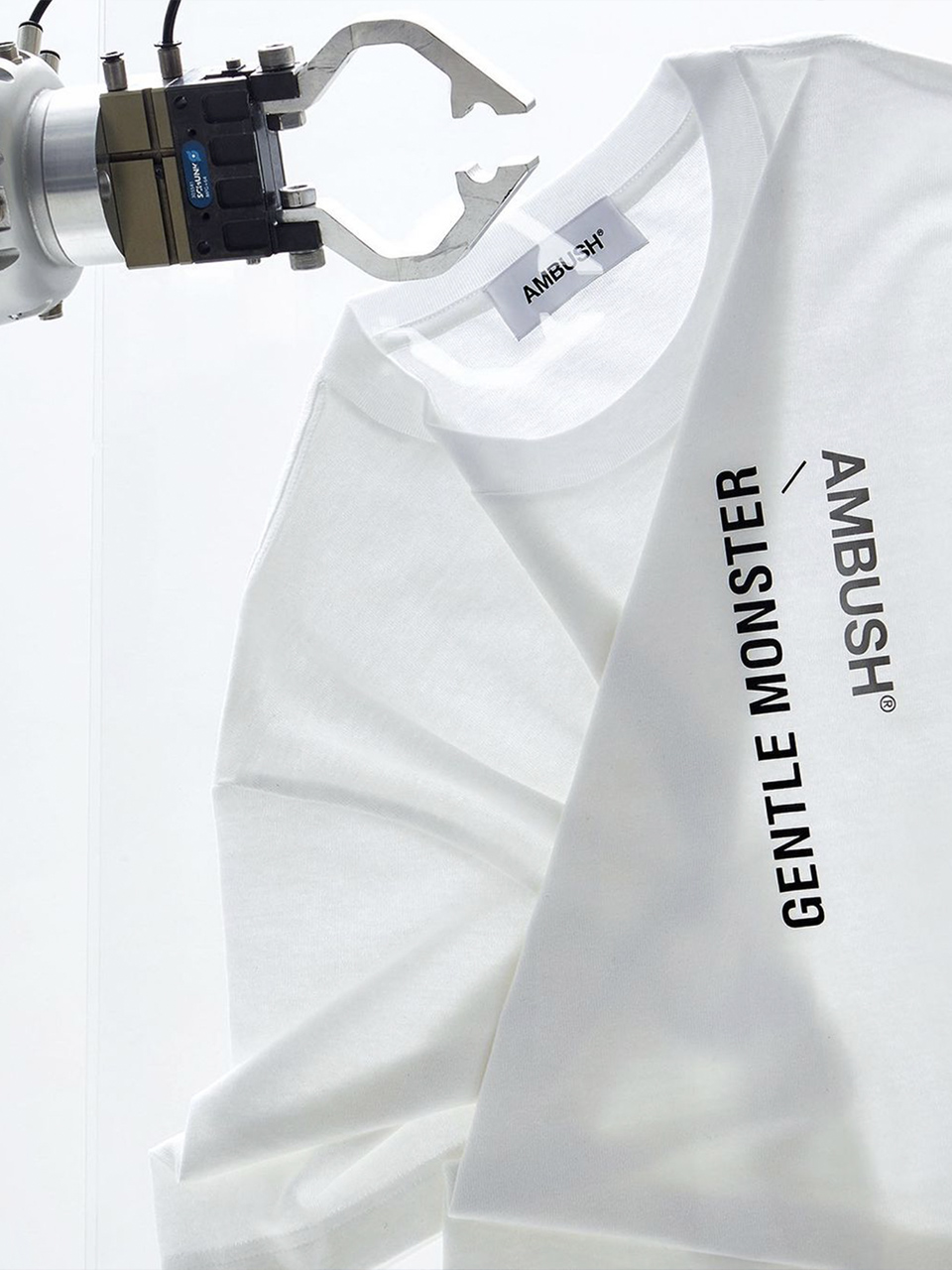앰부시 도쿄 플래그쉽 스토어의 사이니지에서 영감을 받아 콜라보레이션 로고를 세로형으로 디자인했으며, 콜라보레이션 로고를 응용한 선글라스 악세서리를 디자인 했습니다.