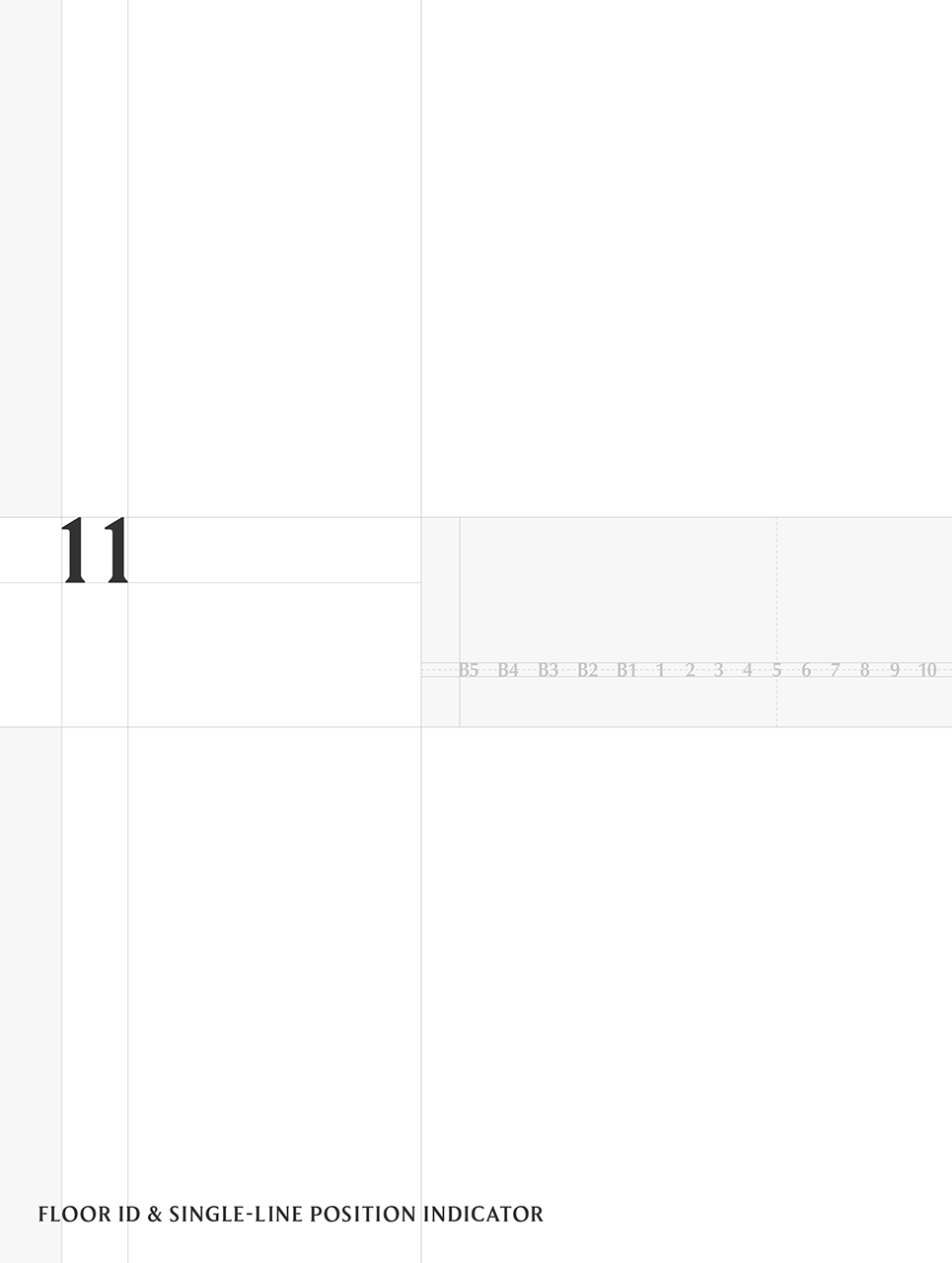 HAUS NOWHERE SEOUL is a mixed-use space housing the brands GENTLE MONSTER, TAMBURINS, NUDAKE, ATIISSU, and Nuflaat, together with IICOMBINED’s offices, spanning from five basement levels to fourteen floors above ground. The signage graphics were developed to align with the tone of the space, prioritizing clarity and visual consistency through a considered information hierarchy and graphic layout. The graphics support intuitive spatial recognition and navigation across the building by responding to floor composition and circulation. Client: IICOMBINED Creative Direction: GENTLE MONSTER (TAESEOK PARK, JAEKYEONG LEE, RAYOUN HWANG) Lead Graphic Designer: HEEWON LEE Assistant Graphic Designer: SUNGMIN LEE Photography: YI LAKYEOM