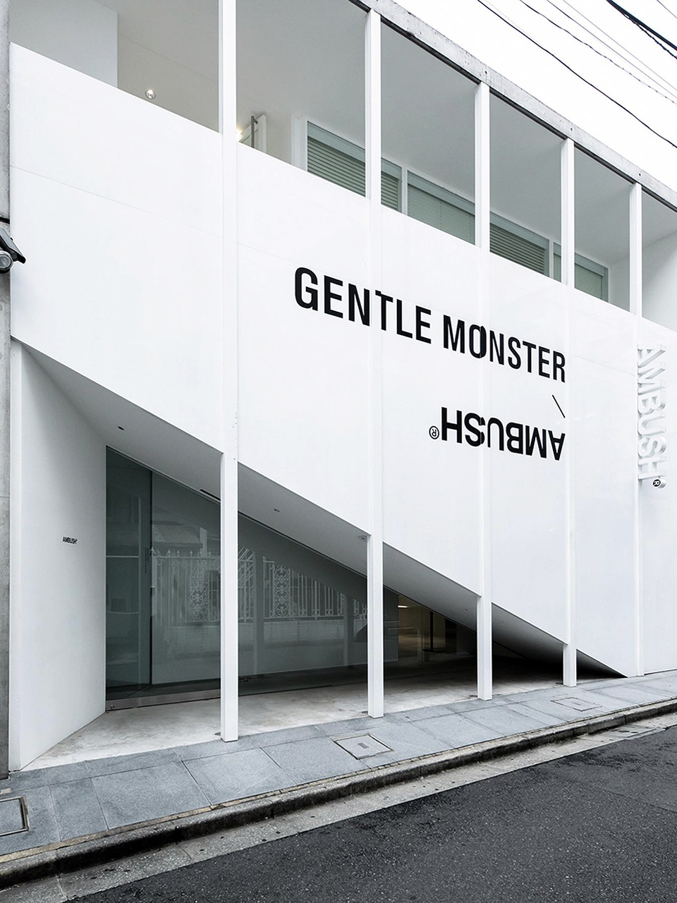 ジェントルモンスターとアンブッシュの初のコラボレーションにおいて、パッケージ、グラフィックアイデンティティ、ポップアップイベントスペースのグラフィックデザインを手がけました。アンブッシュ東京旗艦店のサインからインスピレーションを受け、縦型のコラボレーションロゴをデザインし、このロゴを活用したサングラスアクセサリーもデザインしました。ショーケースに展示されたサングラスの姿をパッケージデザインに反映させることを目指し、完成したパッケージは空間のデコレーション要素としても活用されました。ポップアップイベントは東京とソウルで開催され、イベントスペースのグラフィックや招待状、プレスキット、サインなどもデザインしました。