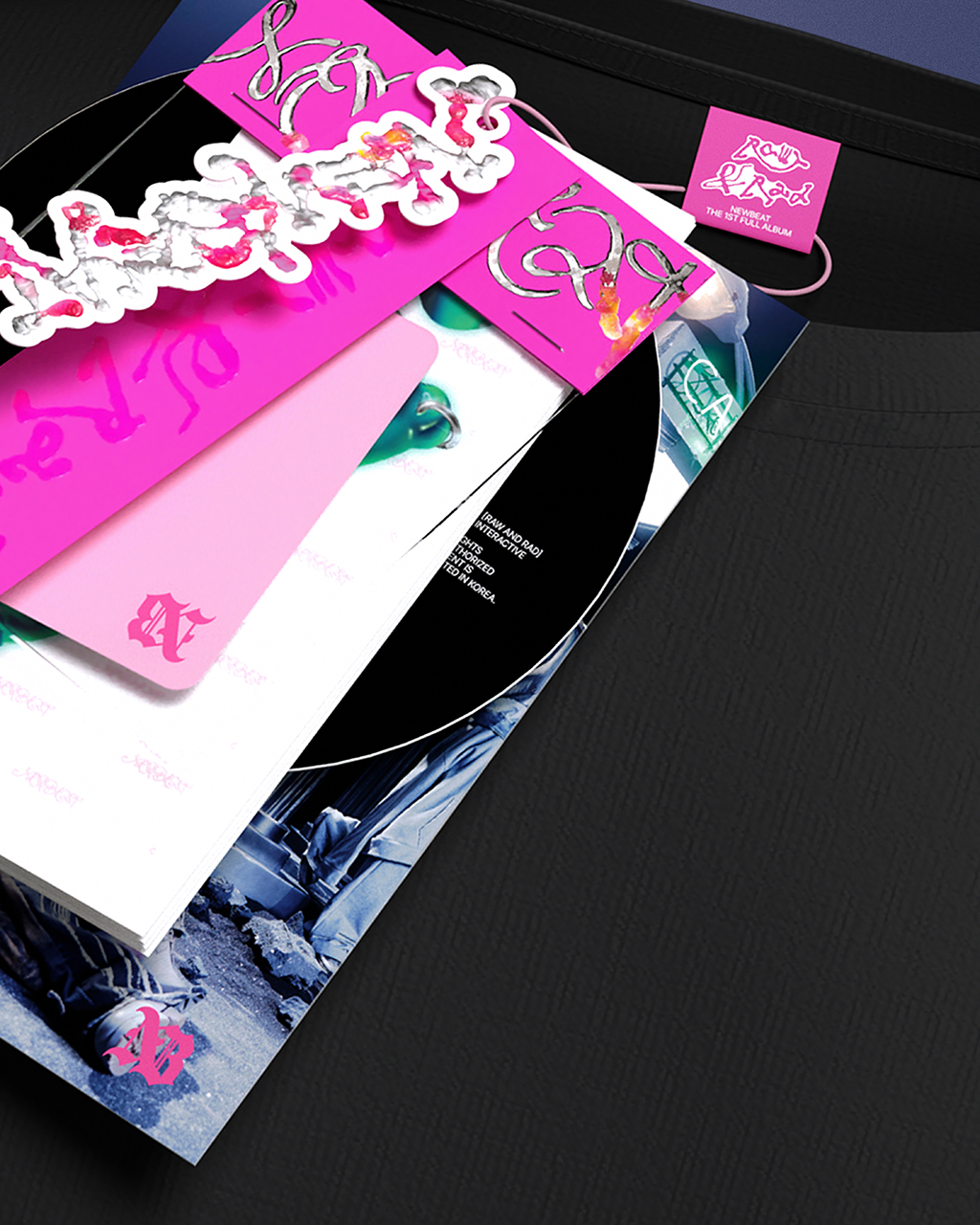 NEWBEAT의 굿즈 및 패키지 그래픽 디자인을 진행했습니다. 패키지는 멤버별 상징 일러스트가 적용된 티셔츠를 중심으로 구성되었으며, 각 구성품은 택(tag) 형태의 그래픽 요소로 풀어내 티셔츠 굿즈의 콘셉트와 방향성을 시각적으로 강화했습니다.